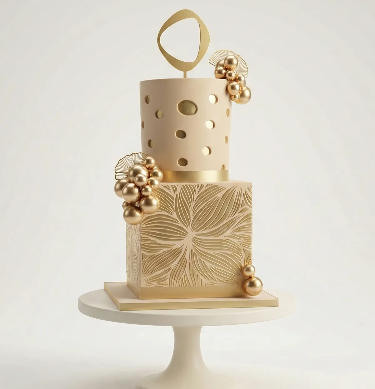 Dual-Shape Gold Fondant Cake